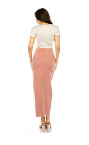 Blush/Coral Long Denim Skirt
