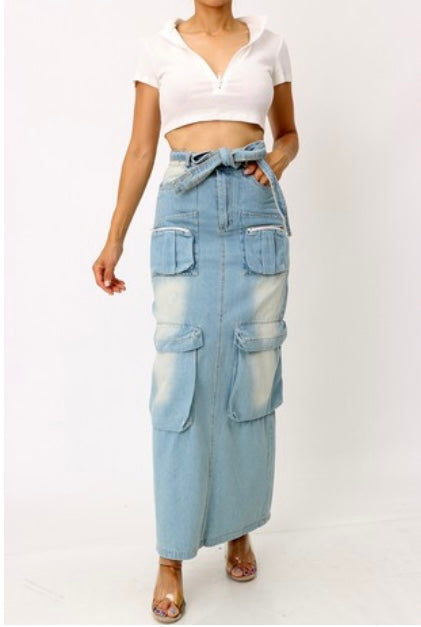 Distressed Long Denim Skirt