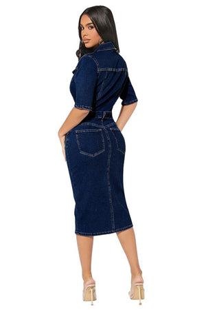 Women Fashion Navy Denim Dress
